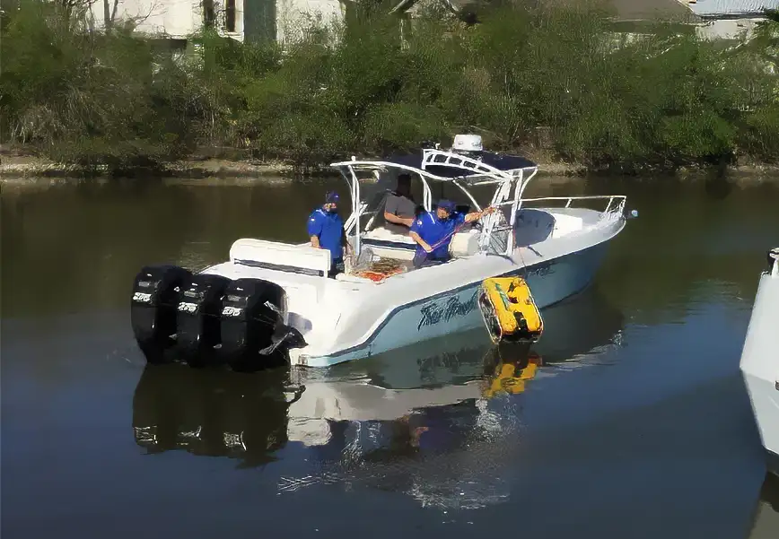 High-powered Rapid Response Vessel or PBR (Patrol Boat - River) capable of 90 mph (78 knots – 145 kmph) for patrol and high speed delivery and features FLIR thermal imaging.