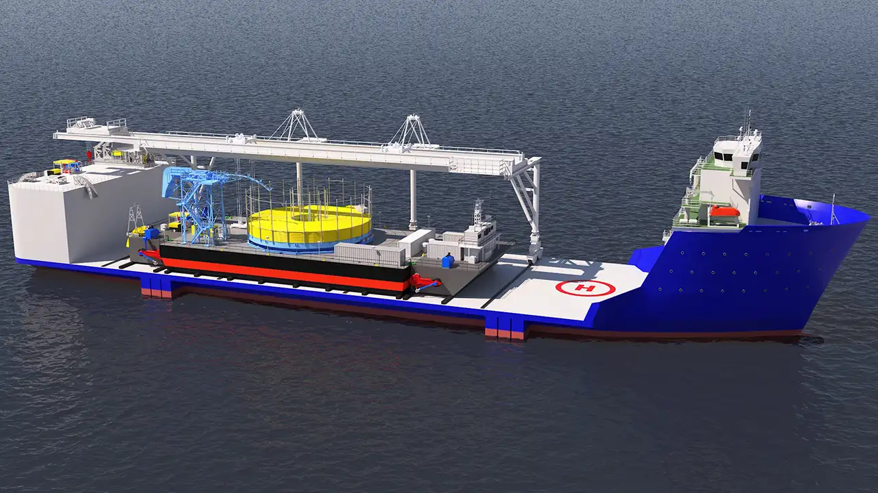 The HLI (Heavy Lift installer) lifts the carousel barge with or without DP End aps and provides dynamically positioned installation in rougher sea conditions eliminating expensive transit time or time to transpool which is safer, shortens project duration and saves money.